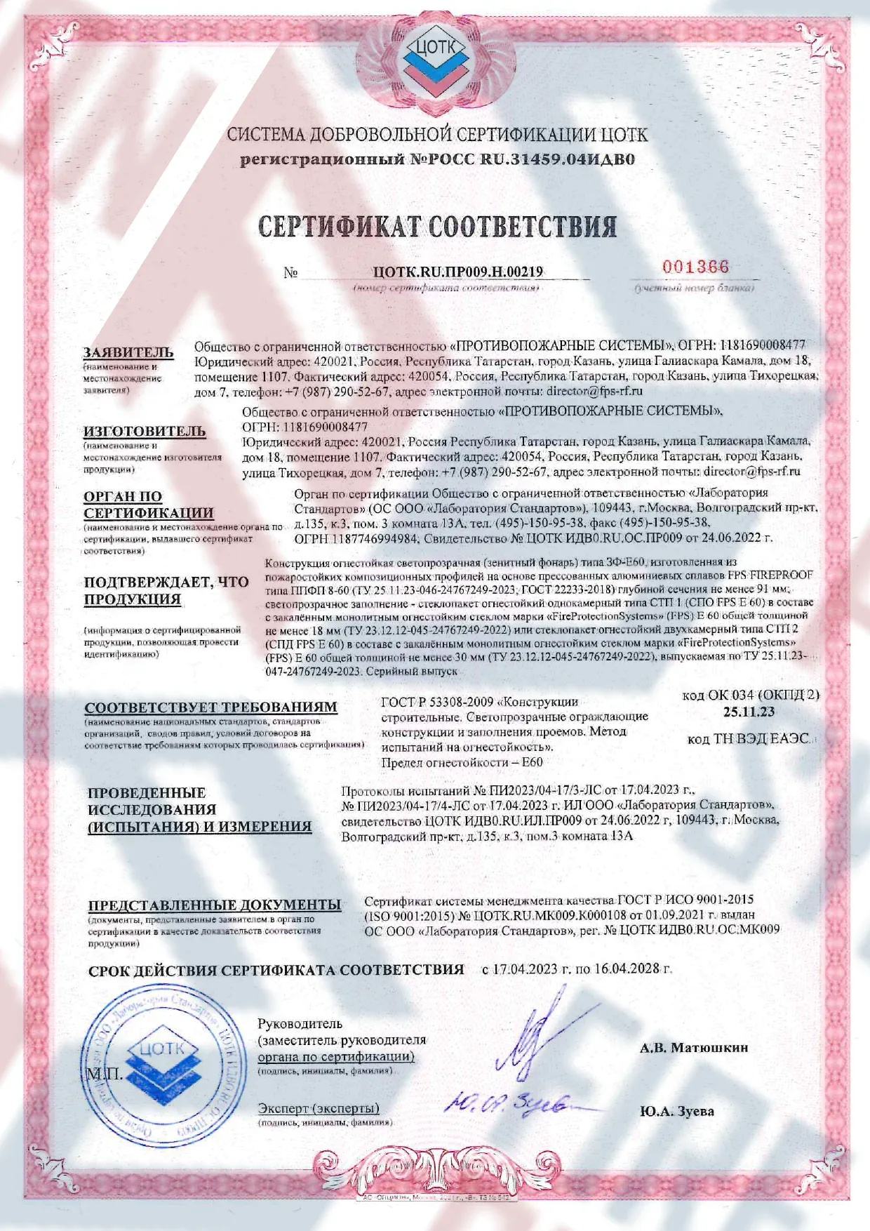 Применение: Рекомендуется для использования в зданиях и помещениях с повышенными требованиями пожарной безопасности.